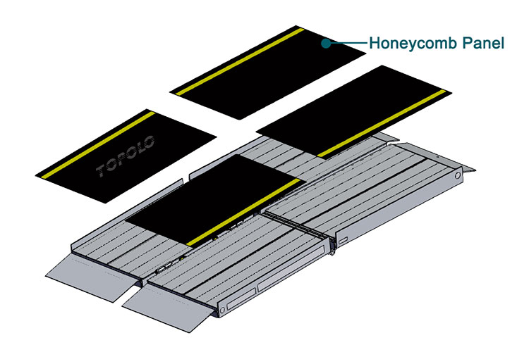 ポリプロピレンハニカムコアが荷重を均等に分散し、スロープが変形することなく重量物に耐えることができます。
