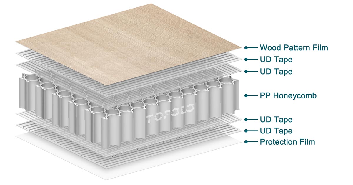 - トップフェーシング:ウッドパターンフィルム+CFRTシート。